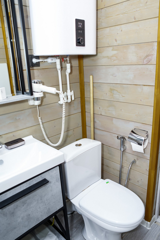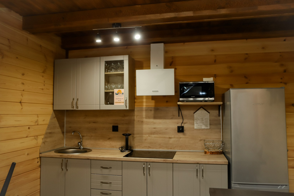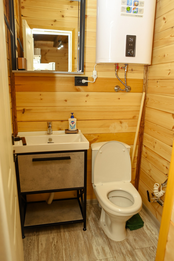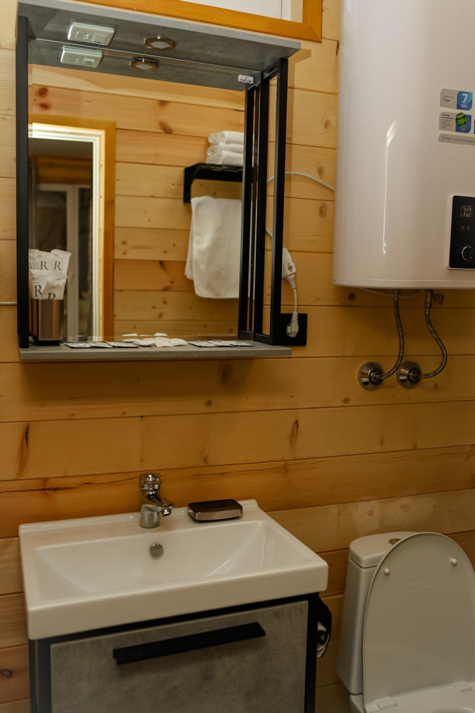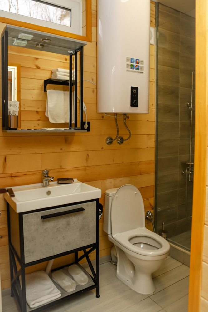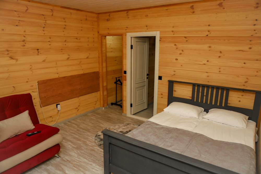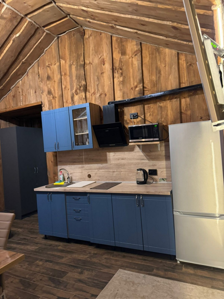 Каждый домик оснащен всем необходимым для удобного отдыха: