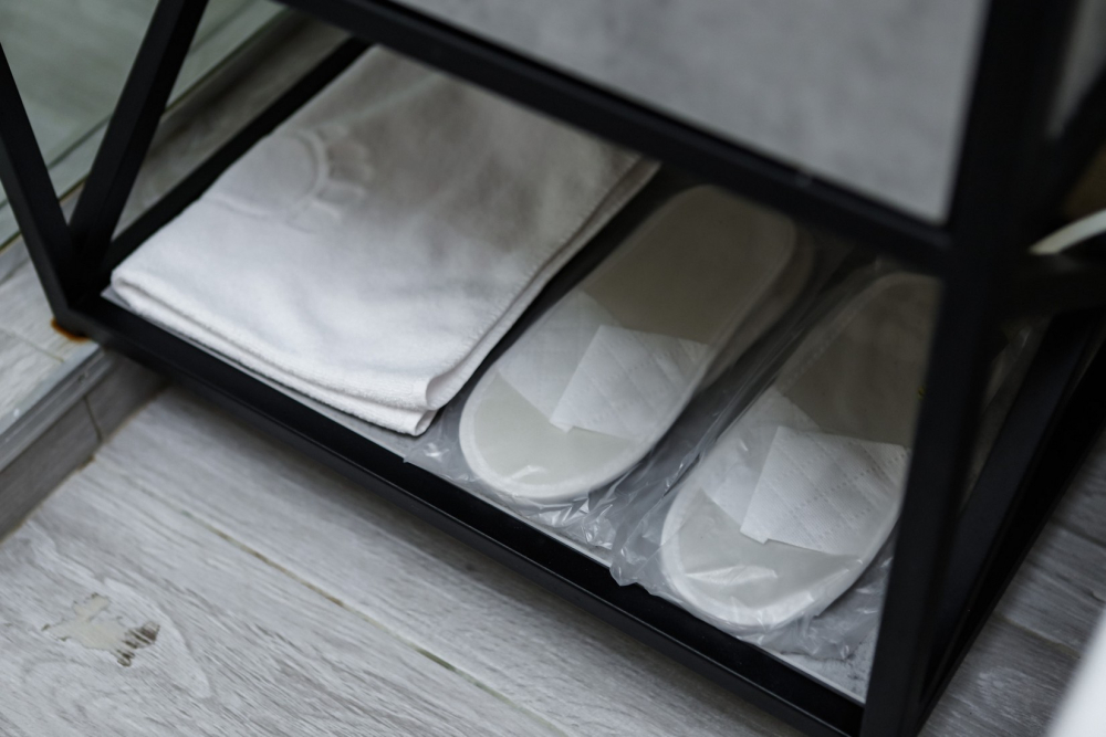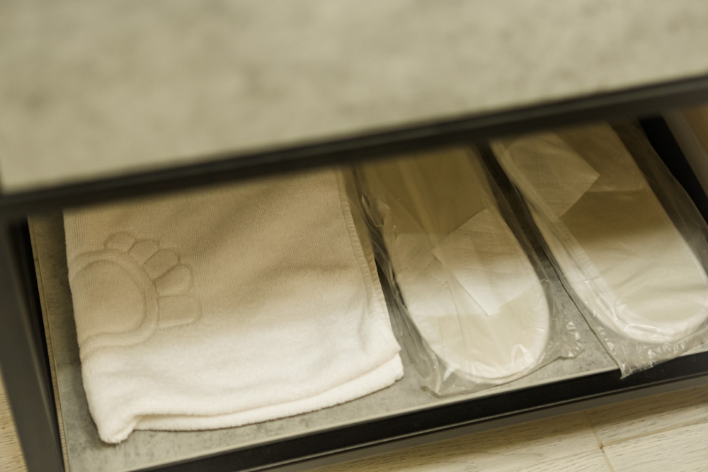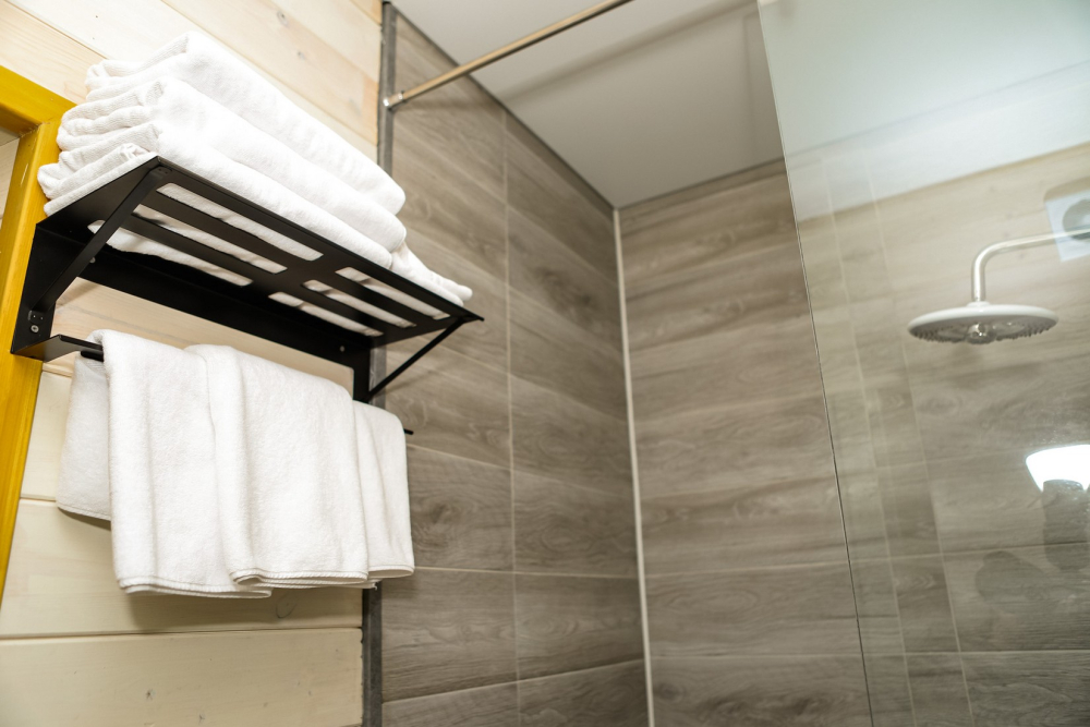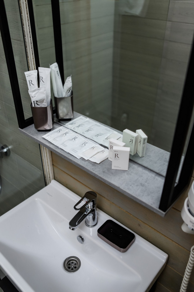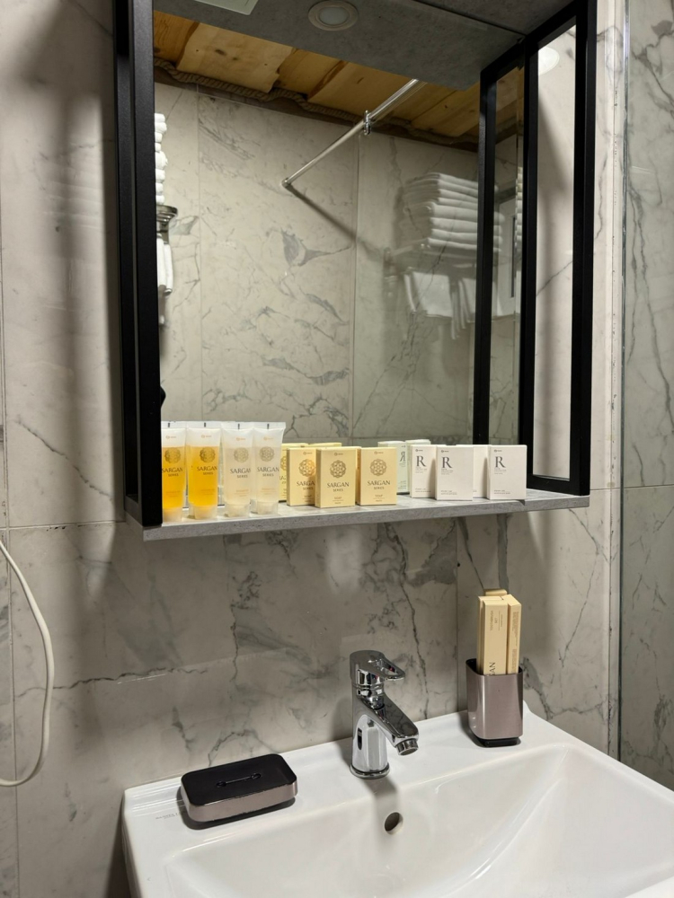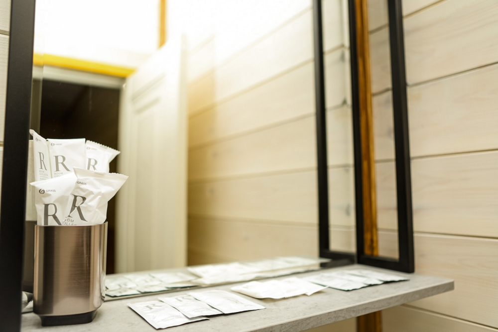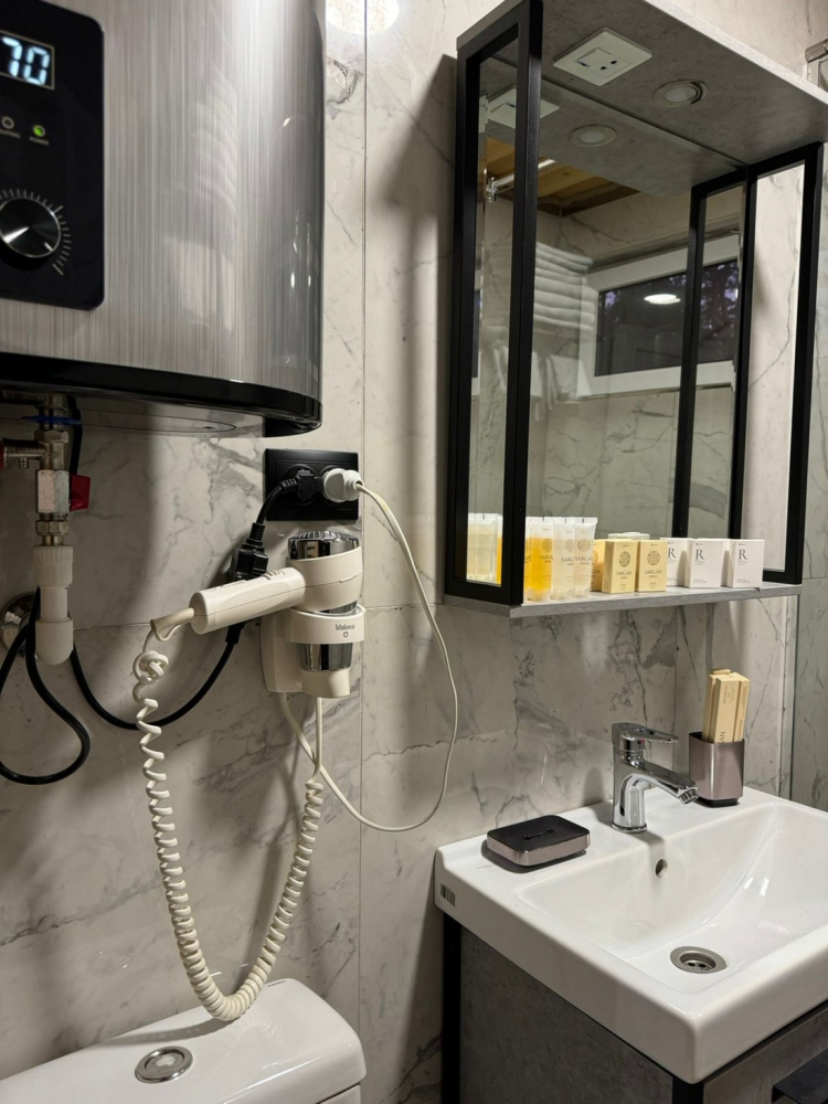 Ванная комната с премиальной косметикой и феном.