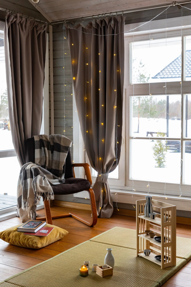 Удобства: Две спальни, один санузел, кухня-гостиная 30 м², панорамные окна с видом на японский сад.