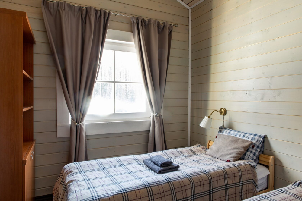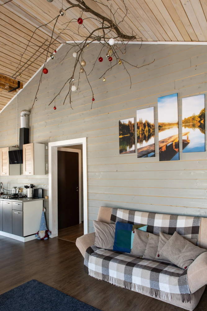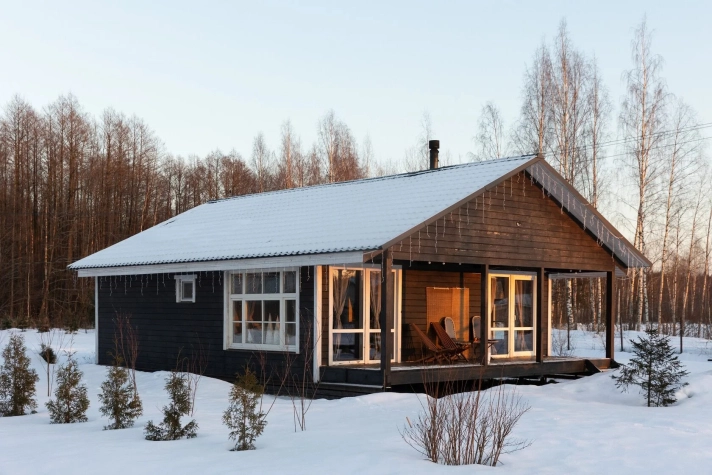 Общее описание: Уютное одноэтажное деревянное шале площадью 96 м², рассчитанное на комфортное размещение до 6 человек.