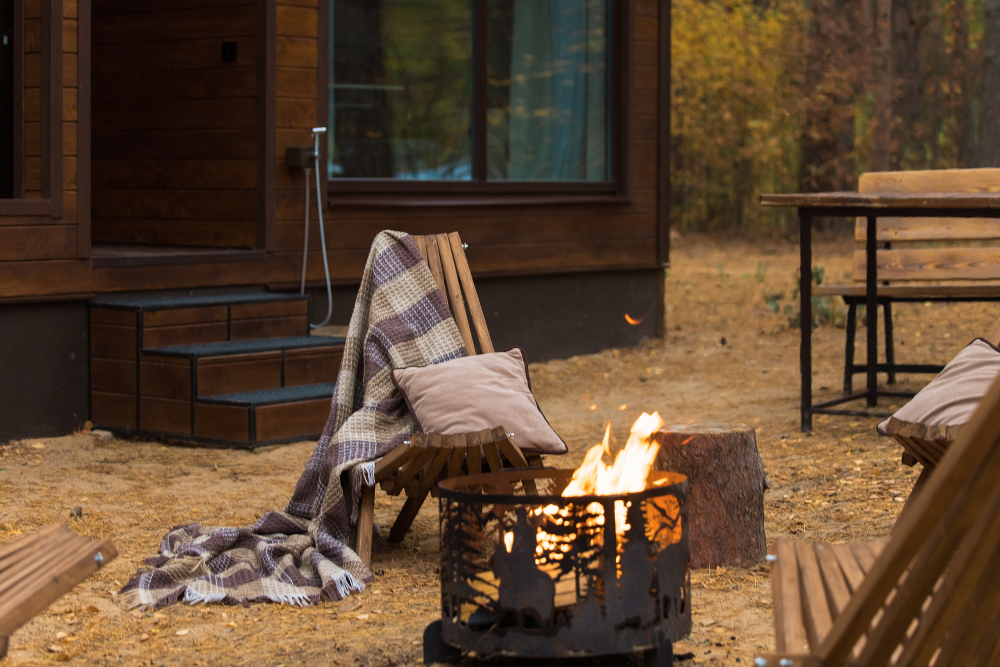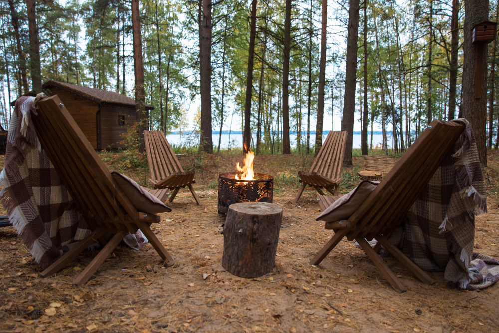 Костровая зона с креслами «Кентукки» для посиделок у огня.