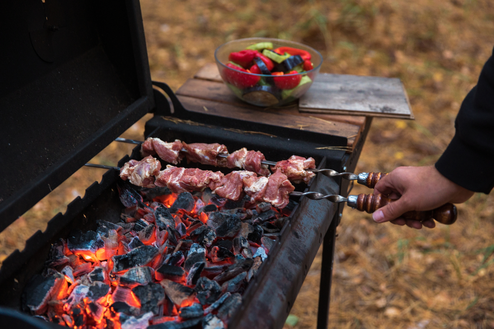 Да, мангал и дрова есть у каждого домика-бесплатно. Уголь можно купить у нас за 300 р., средство для розжига 200 руб., аренда шампуров/решетки 300р.