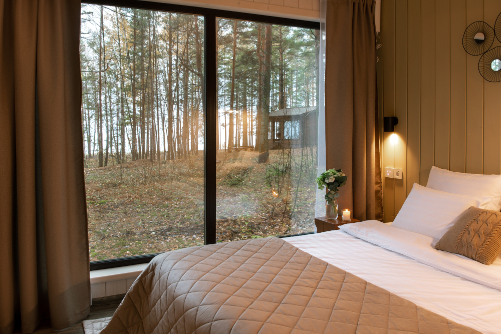 Настоящий оазис комфорта вдали от цивилизации. Насладитесь тишиной леса и пением птиц, безграничными водными просторами до горизонта, окружёнными сосновым массивом. Здесь незабываемые закаты и яркое звёздное небо, которым можно любоваться прямо из уютной постели, подарят вам настоящее вдохновение.