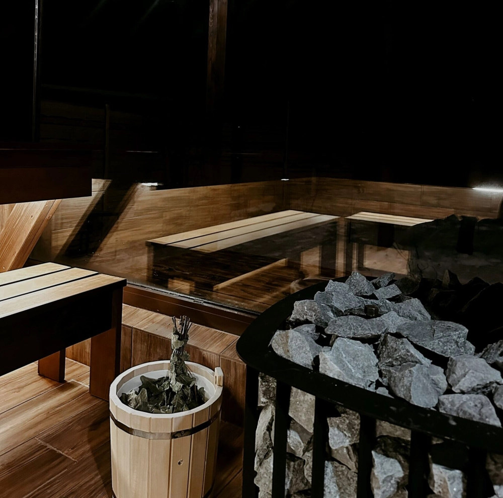 Лесная панорамная баня — это место, где отдых для души сочетается с пользой для здоровья: она расслабляет, оздоравливает тело, очищает поры и выводит токсины, доставляя удовольствие и наслаждение. Стоимость посещения — 6900 руб. за 2 часа.