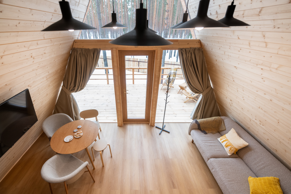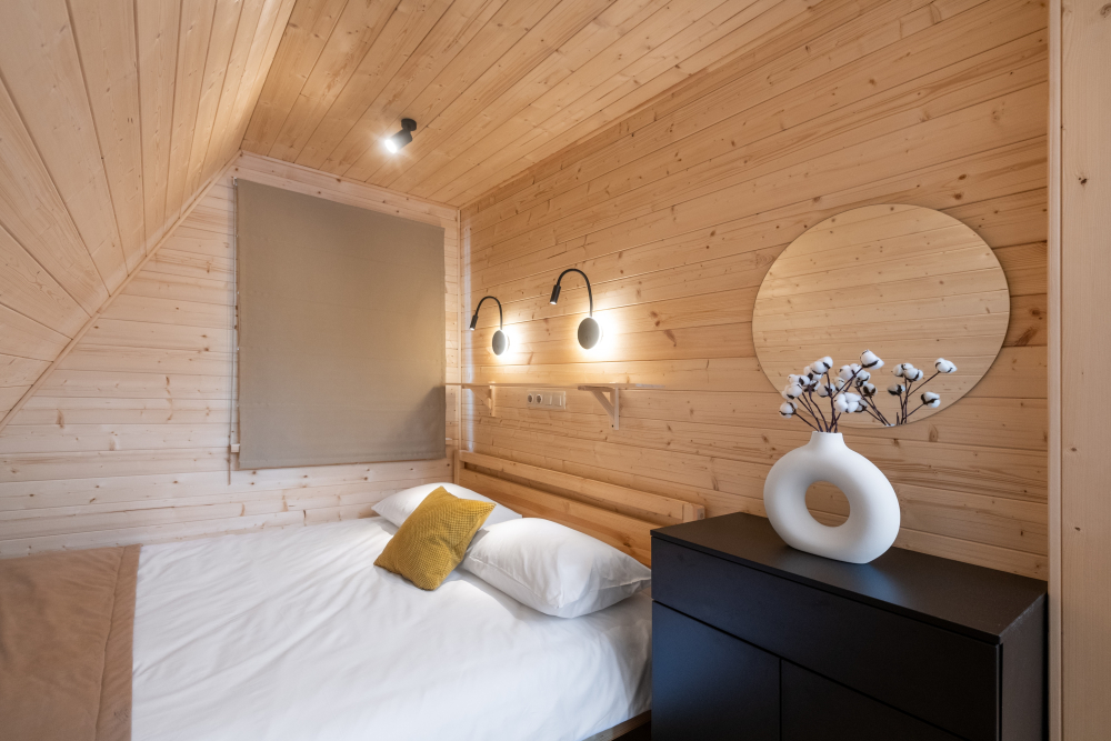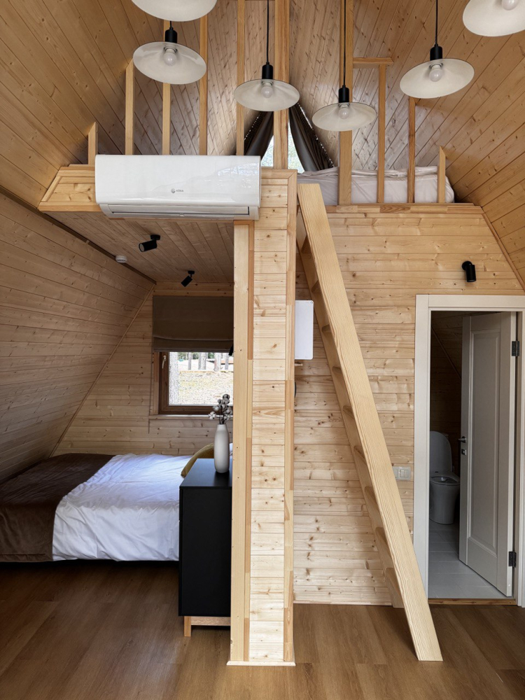 Уютные дома с современным интерьером, удобными кроватями, санузлом и душем.