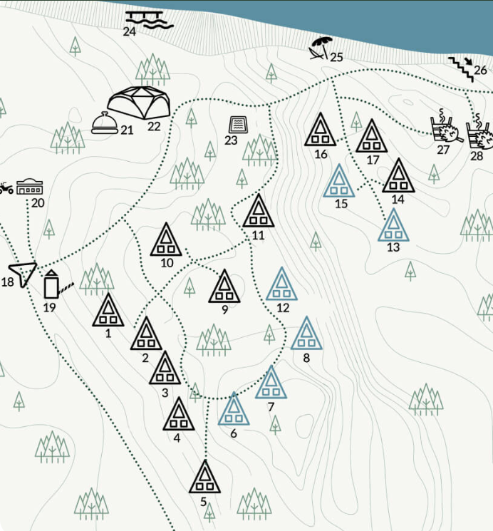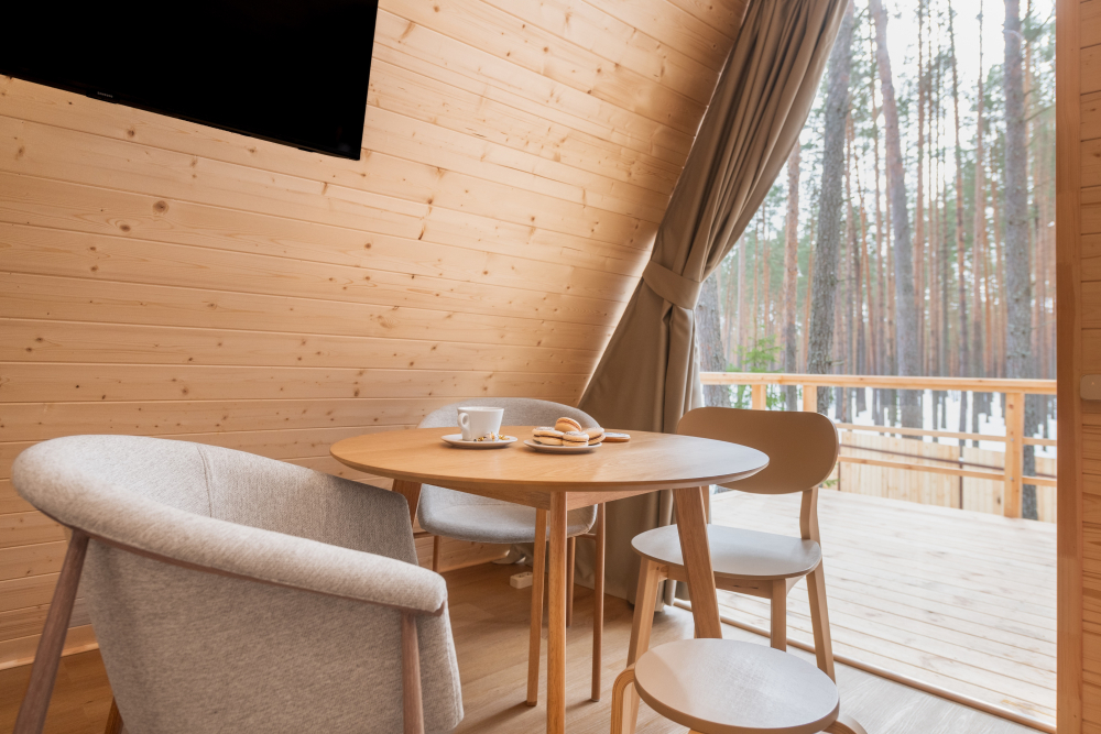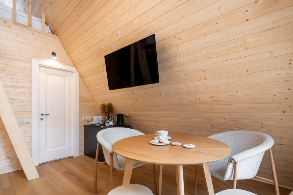 Наш объект размещения — это 17 уютных лоджей с панорамными окнами и террасами, с которых открываются великолепные виды на лес и реку, где премиальный комфорт и эстетика соединяются с любовью к природе и заботой о ней, а также ресторан русской кухни с тверскими традициями банный комплекс на берегу реки Орша с пирсом