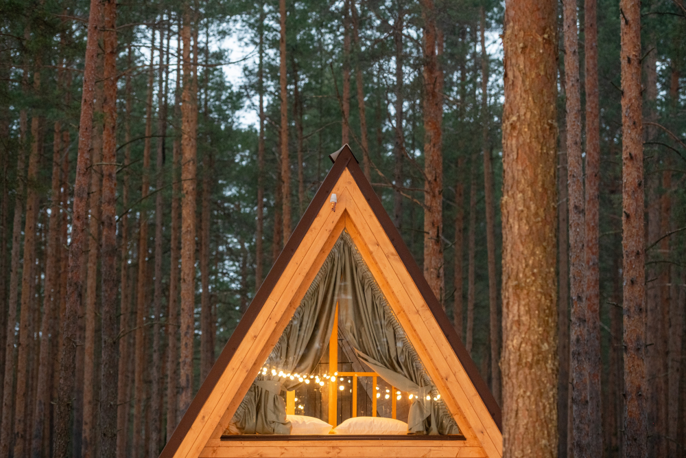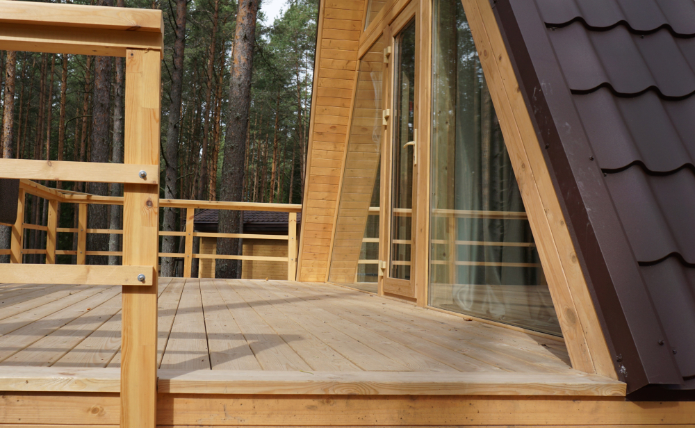 А-Фрейм с террасой – стильный домик с панорамными окнами и террасой, идеально подходящий для комфортного отдыха.
