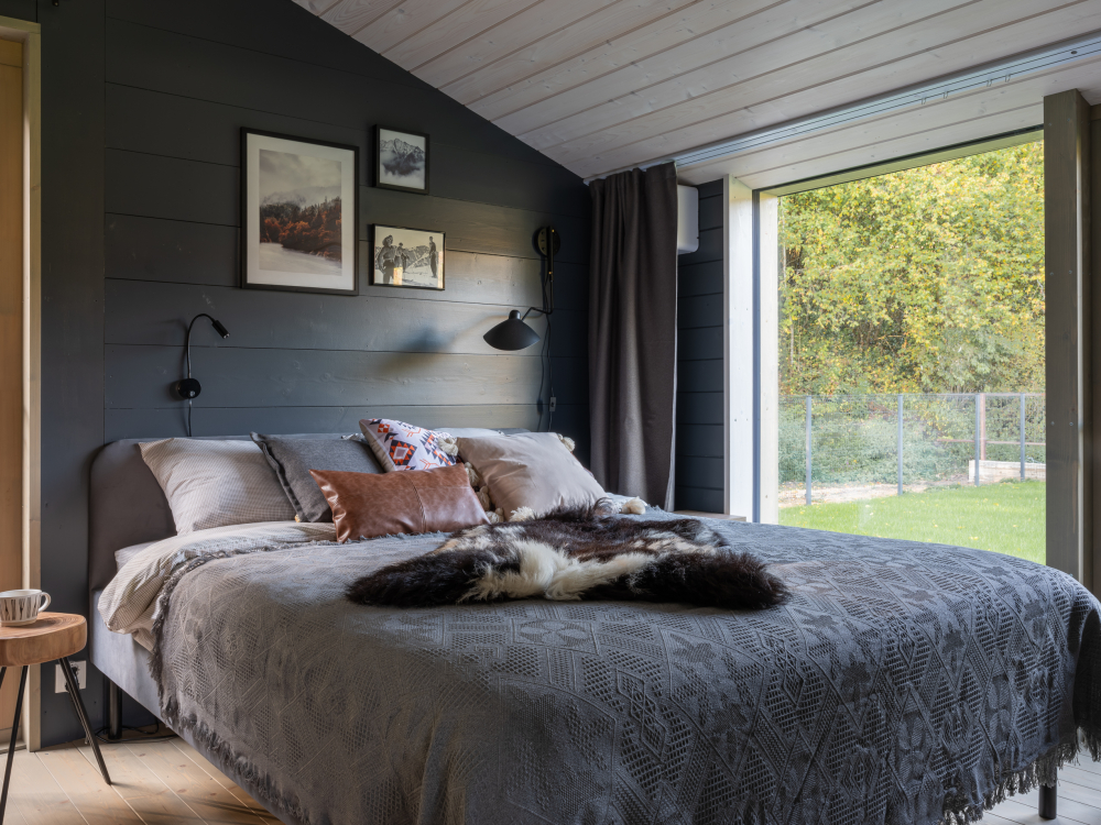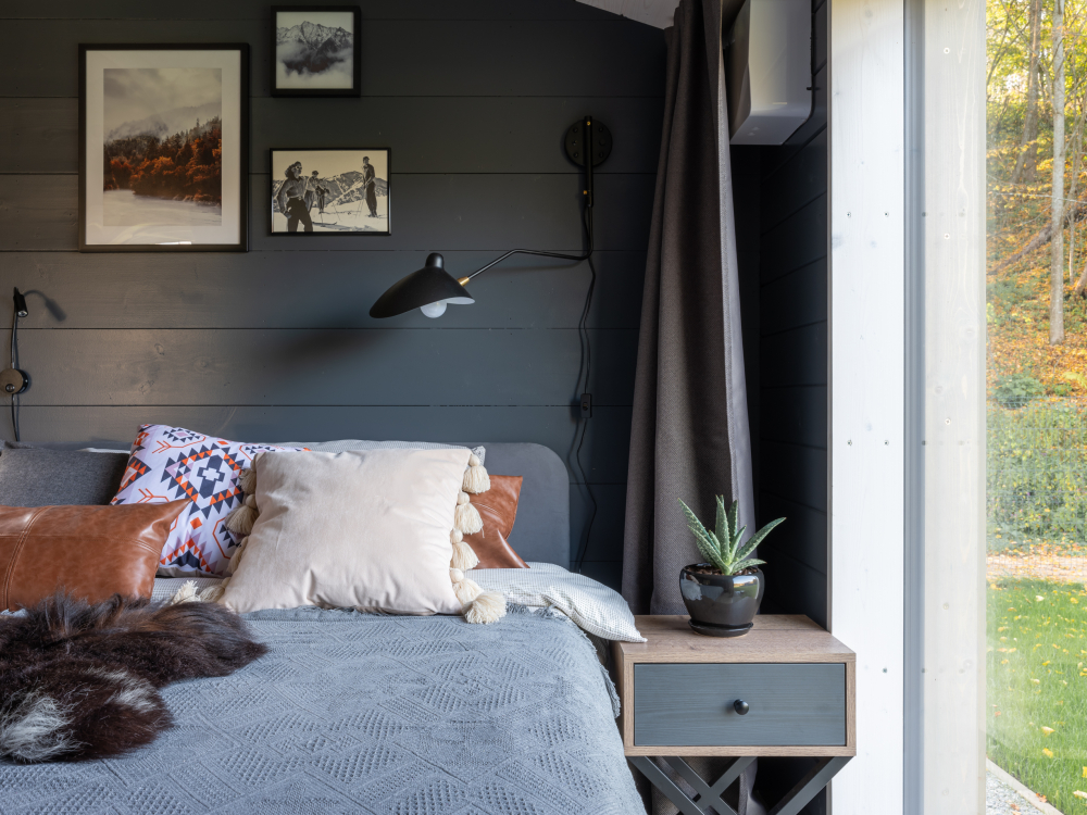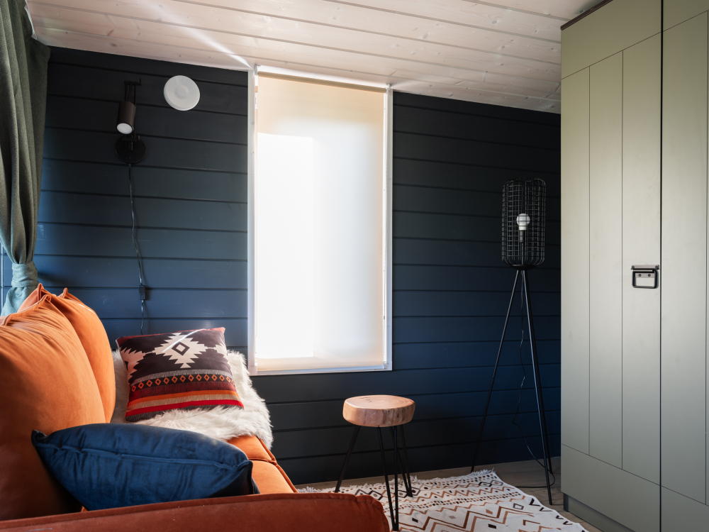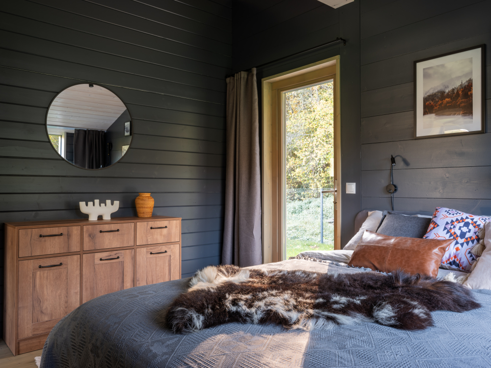 - Двуспальная кровать (160х200) с матрасом средней жесткости и шторами блэкаут.