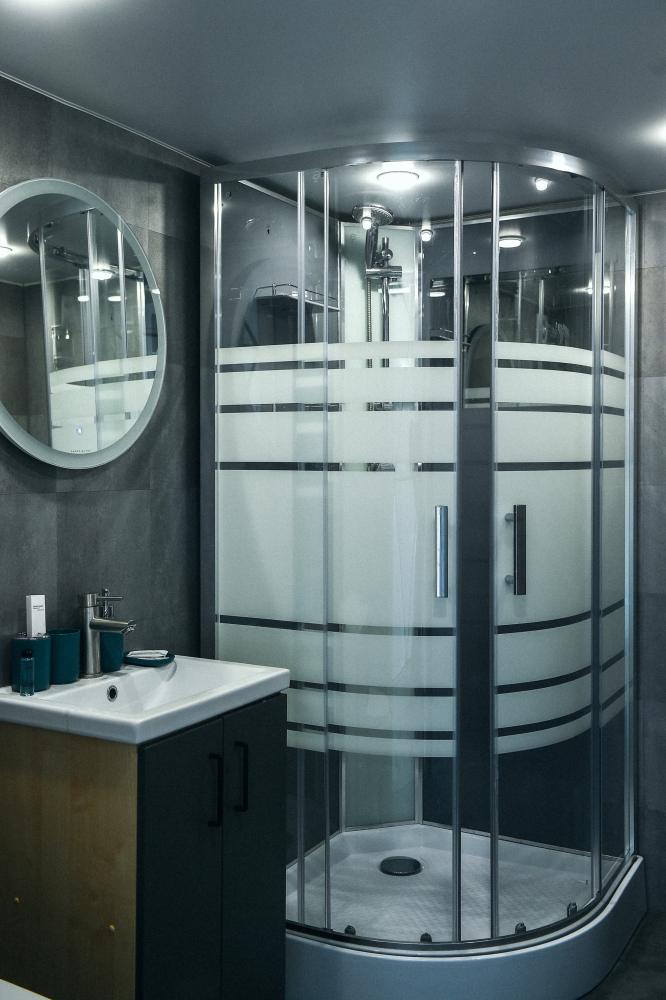 Удобства: туалет, душ, фен, косметические наборы, кухня, система тёплого пола и кондиционирования, телевизор с функцией smart-TV.