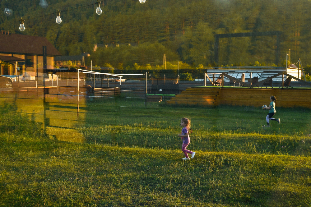 Волейбольная площадка: Развлечения с друзьями среди величественных гор.