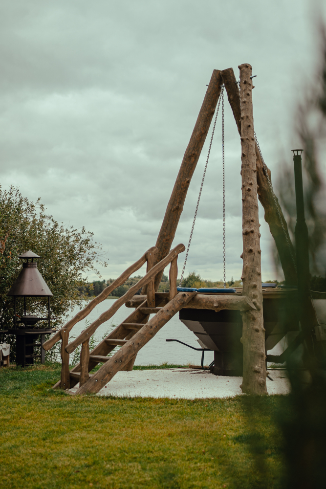 На территории у озера оборудована костровая зона, где гости могут насладиться уютными вечерами у огня, приготовить блюда на открытом пламени и провести время в приятной атмосфере на свежем воздухе.