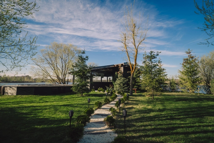 Два дома у воды с террасами и мангальными зонами.