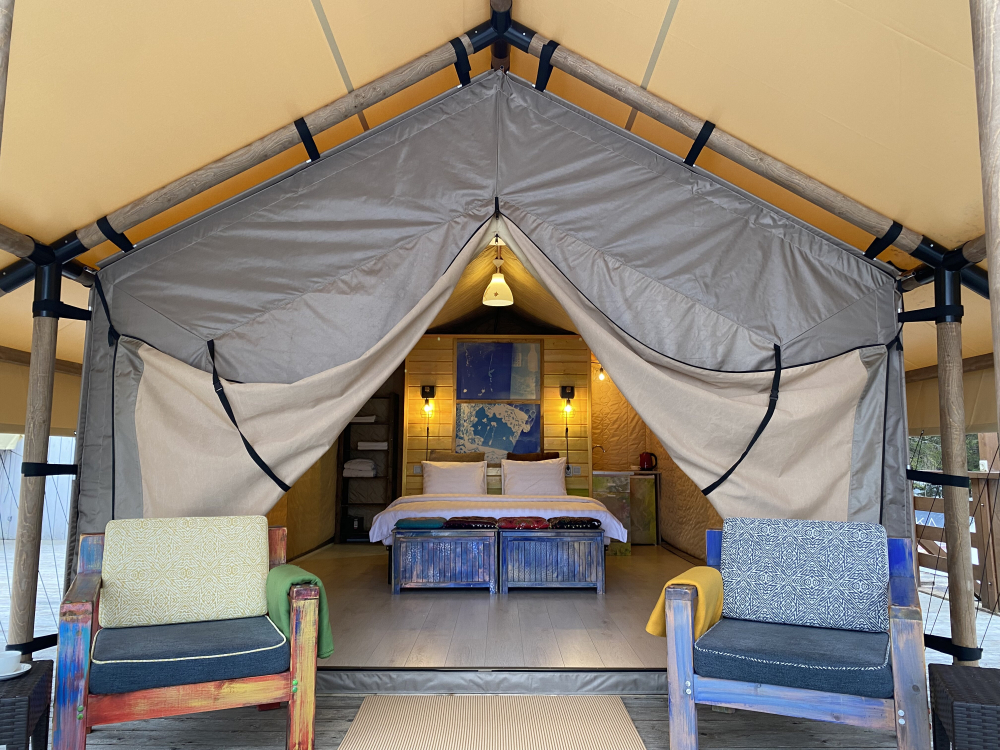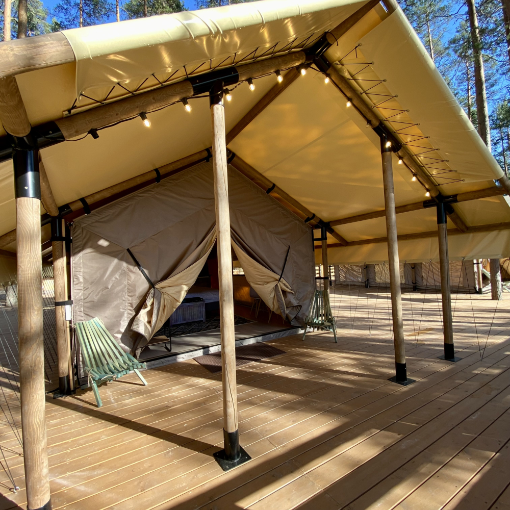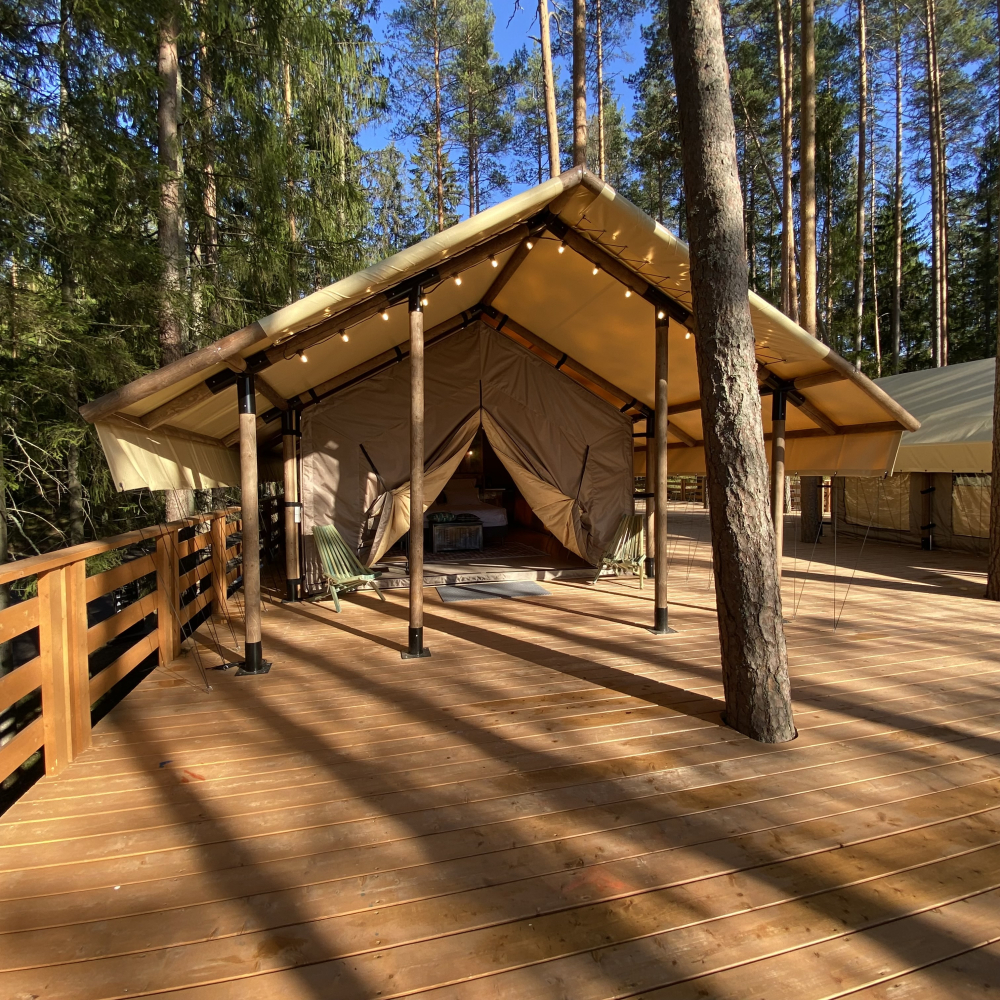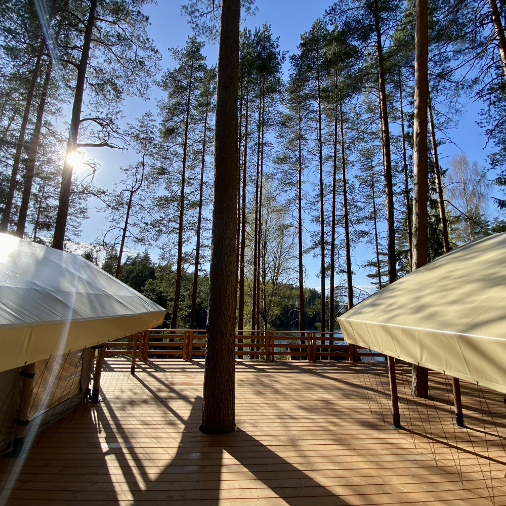 Мы открылись в 2024 году на территории парка «Вереск» в рамках национального проекта России «Туризм». Здесь, на берегу лесного озера, всего в часе езды от центра Петербурга расположились 2 просторные террасы с обустроенными сафари-лоджами — панорамными номерами в эстетике природности и комфортных путешествий.