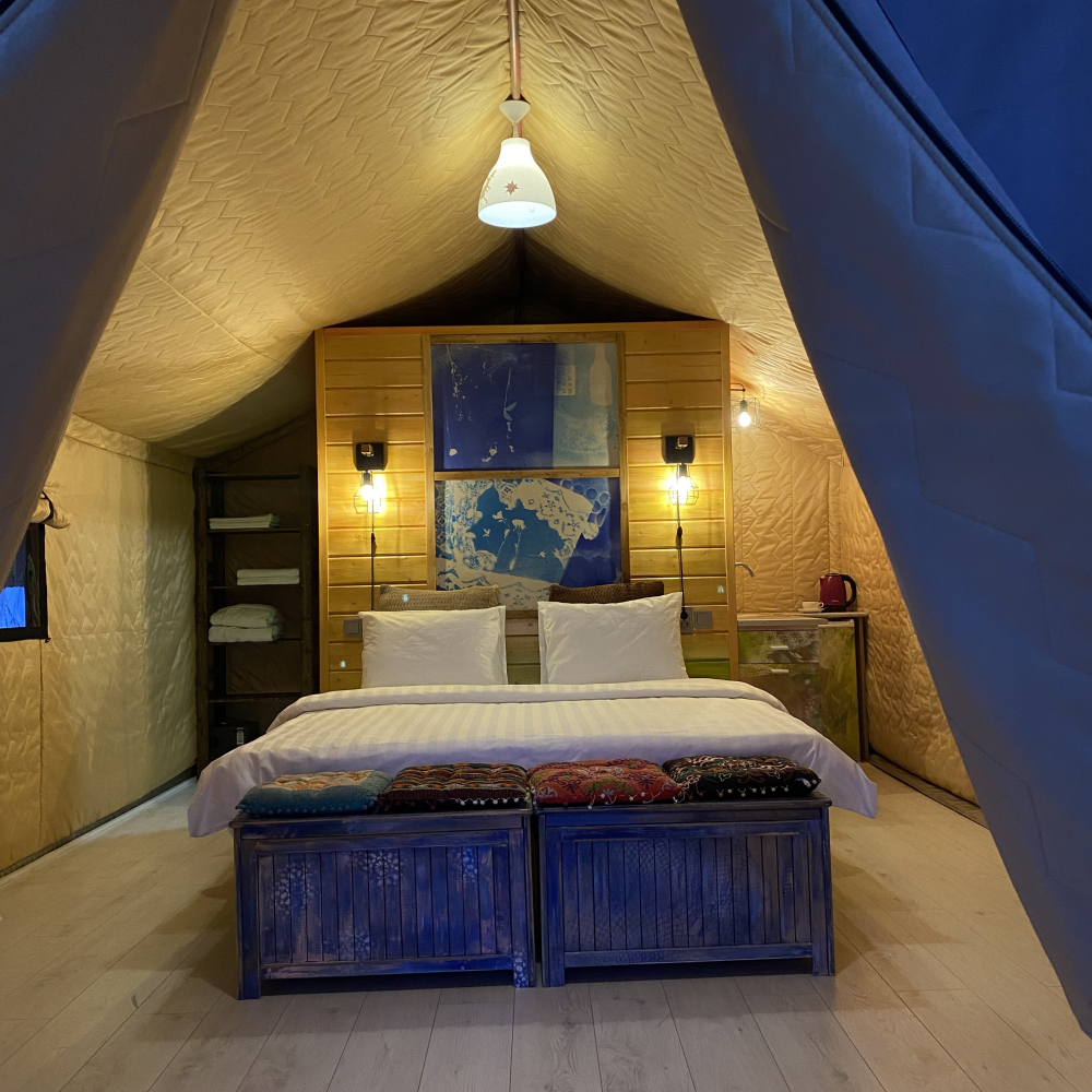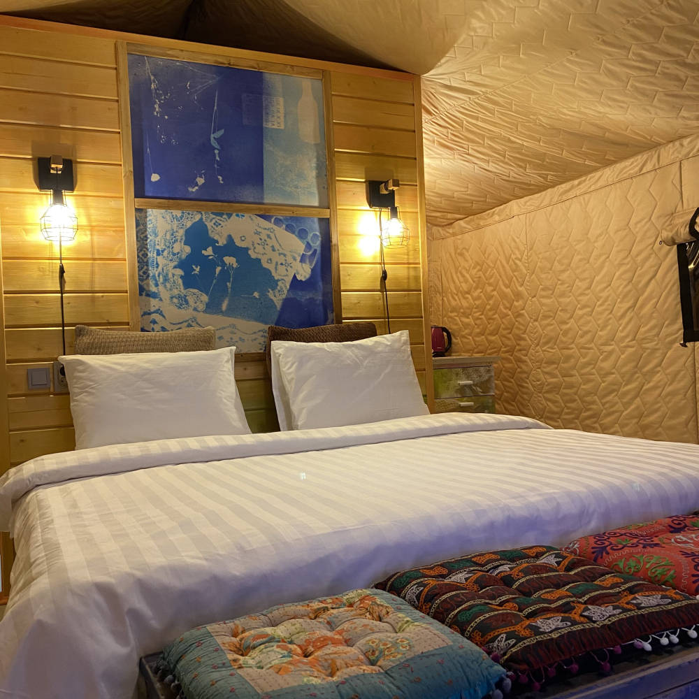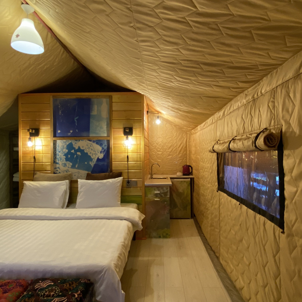 В лоджах площадью 24 кв. м разместилась удобная king size кровать, мини-кухня и полноценный санузел. Каждый из номеров — индивидуален, дизайн и оформление помещений придумала художница Арина Чежина.