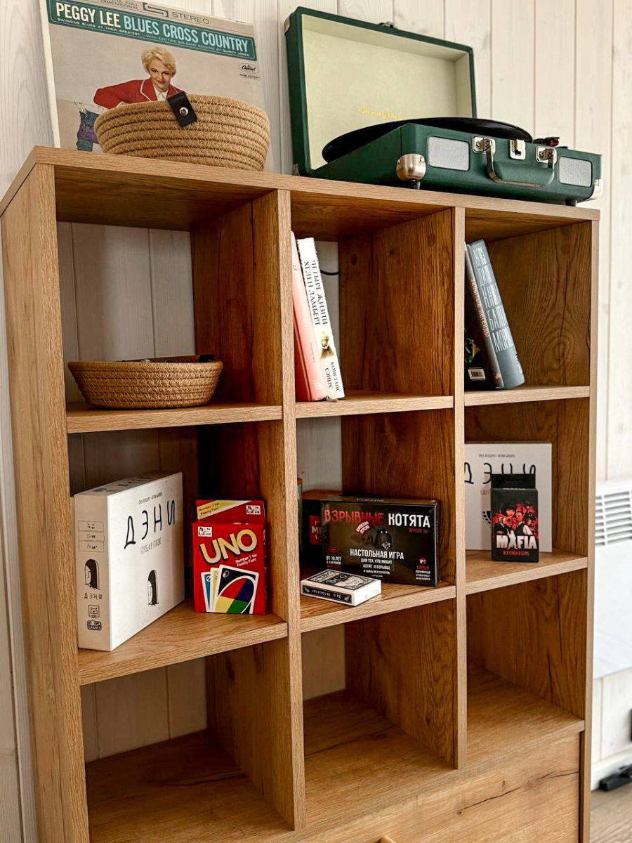 Для еще более уютных вечеров дом оснащен проектором и виниловым проигрывателем.