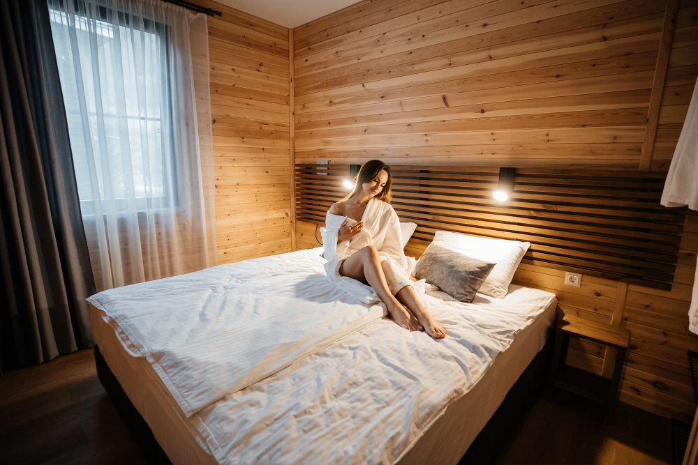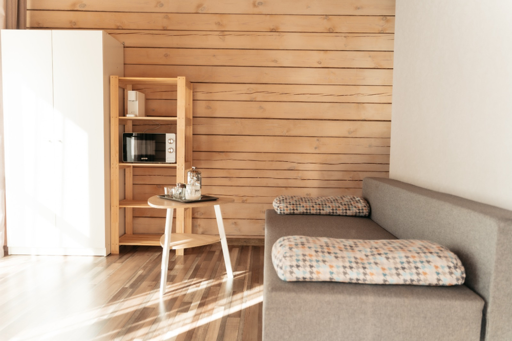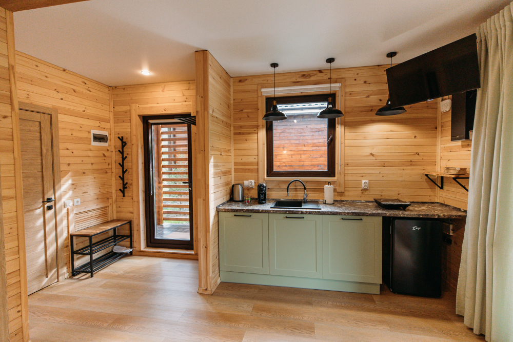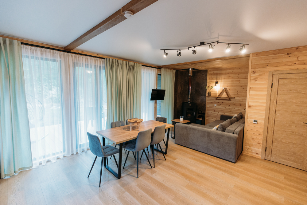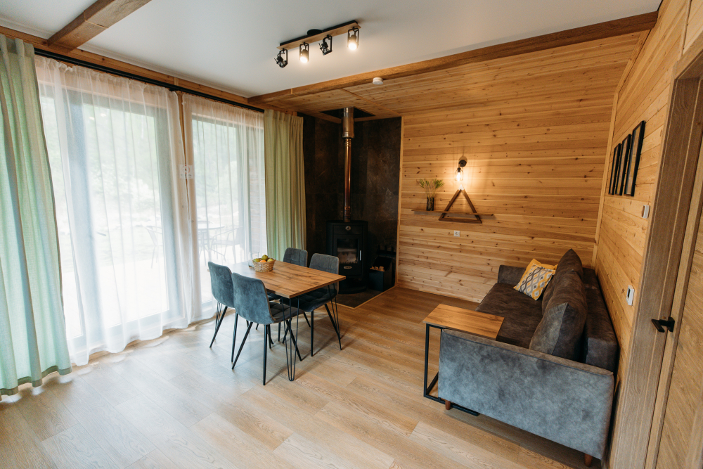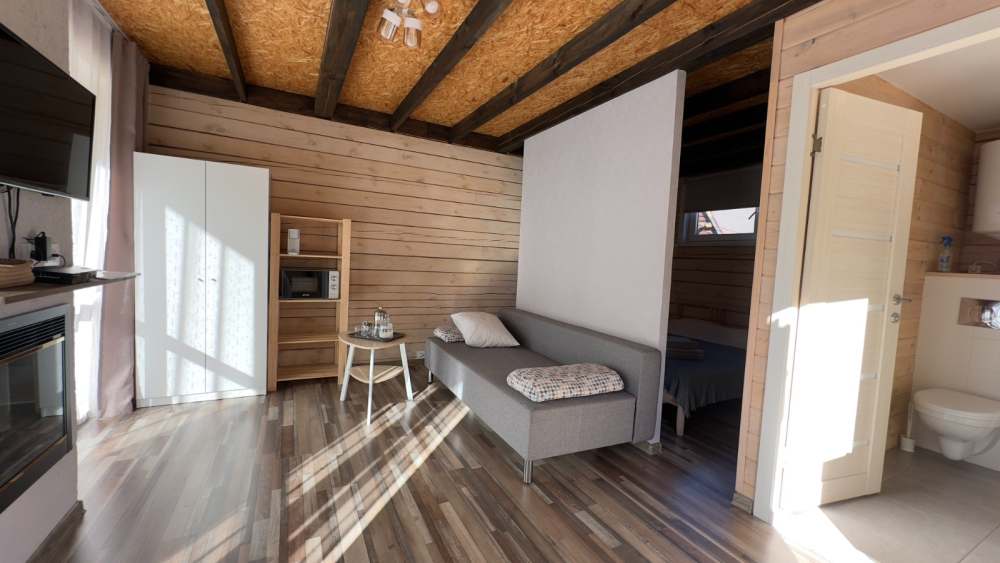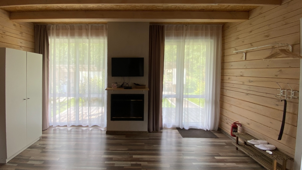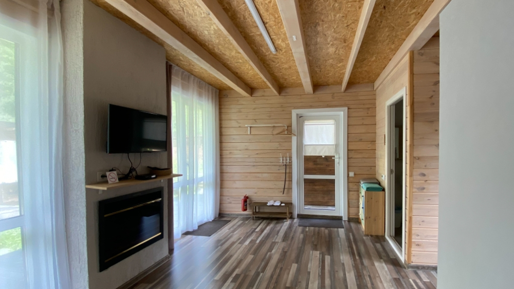 В каждом домике есть smart TV и WI-FI и вы сможете повалятся на диване за просмотром фильмов.