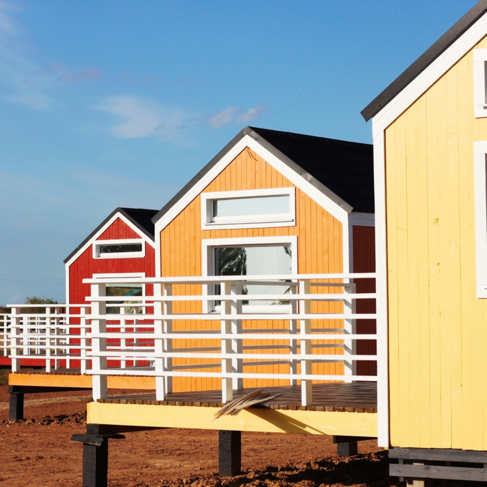 Жилые домики: 7 уютных домиков для 2-4 гостей, с теплыми интерьерами, спальней, кухней, душем и просторной террасой
