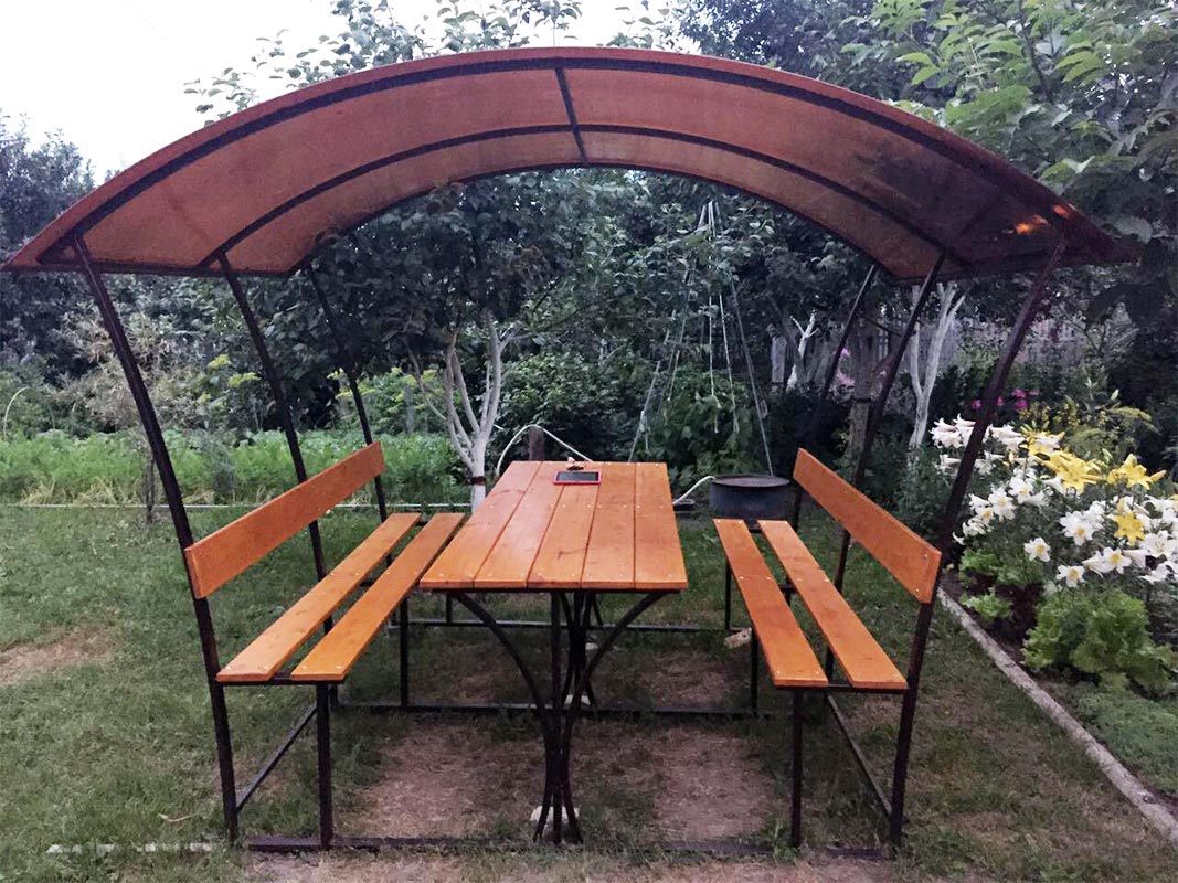 Мангал и беседка входят в стоимость. Дополнительно вы можете арендовать шампура и решетки. Также на стойке ресепшен вы можете приобрести древесный уголь и жидкость для розжига.