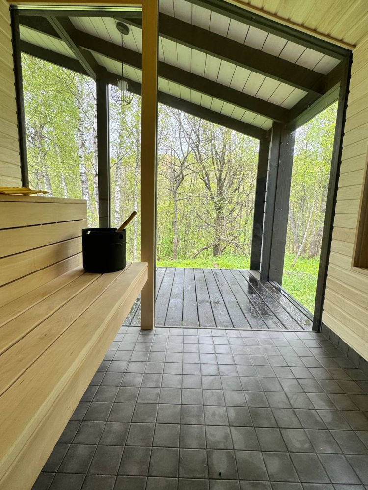 Сауна с панорамным остеклением, чтобы наполнить теплом не только душу, но и тело.