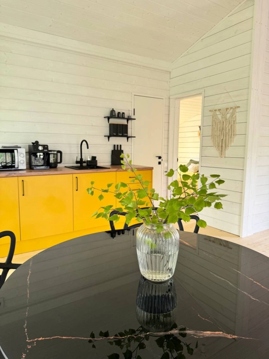 Атмосфера дома: Здесь своя атмосфера, когда не нужно зависеть от внешних факторов: вам всегда сопутствуют ясная погода и позитивное настроение. Блеск солнца и золота, цвет осенней листвы, песка, соломы, спелых фруктов, меда или куркумы — такой разный и теплый ассоциативный ряд. Уверены, каждый найдет что-то особенное для себя, что подарит еще больший уют от пребывания в доме.
