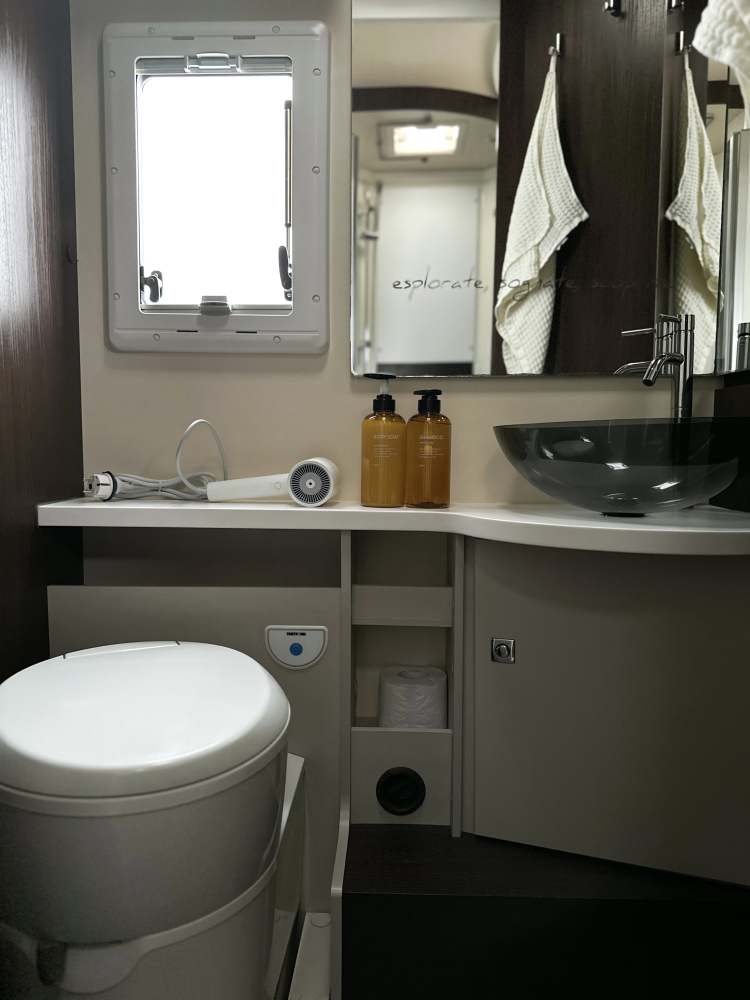 Топливный бак — 90 л, бак серой воды — 92 л, бак чистой воды — 100 л, кассета туалета — 18 л.