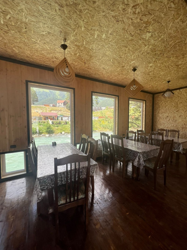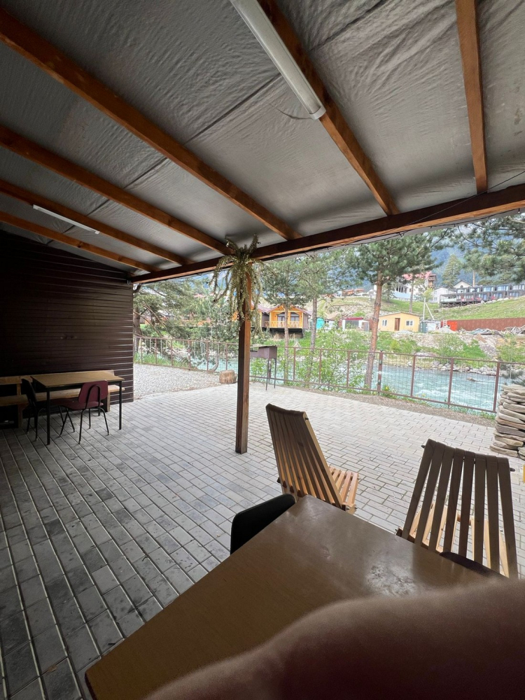 Комплекс находится в центре поселка, в непосредственной близости от реки и величественных гор. В шаговой доступности конные прокаты, рафтинг, русская баня, магазины и рестораны.