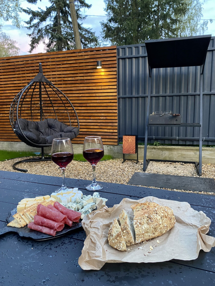 Вам нужно захватить с собой уголь и мясо. Все остальное оборудование для лучшего шашлыка на природе вы найдете в нашем доме.