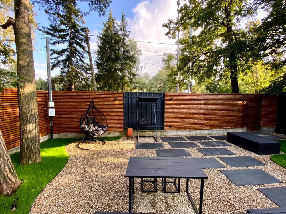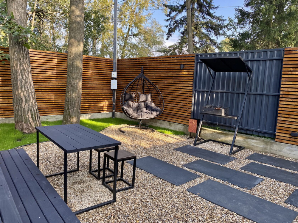 Мангальная зона, подвесные кресла-коконы.
