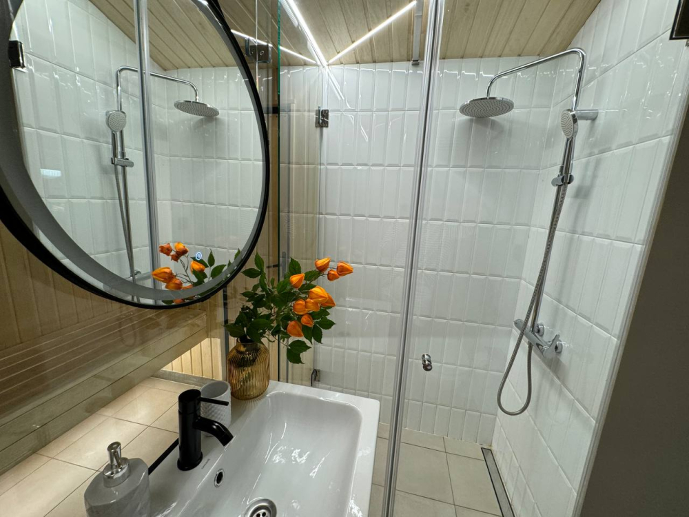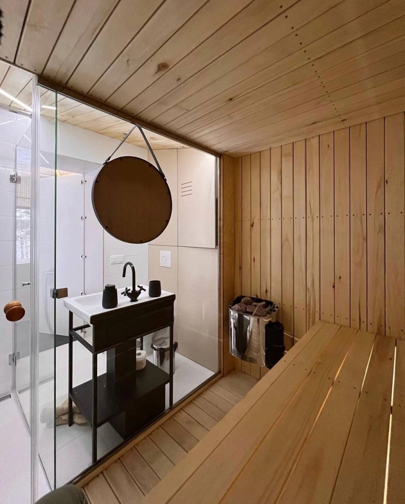 - Финская сауна с гималайской солью и яшмой для релаксации (оплачивается отдельно: 1000 руб. за 2 часа).