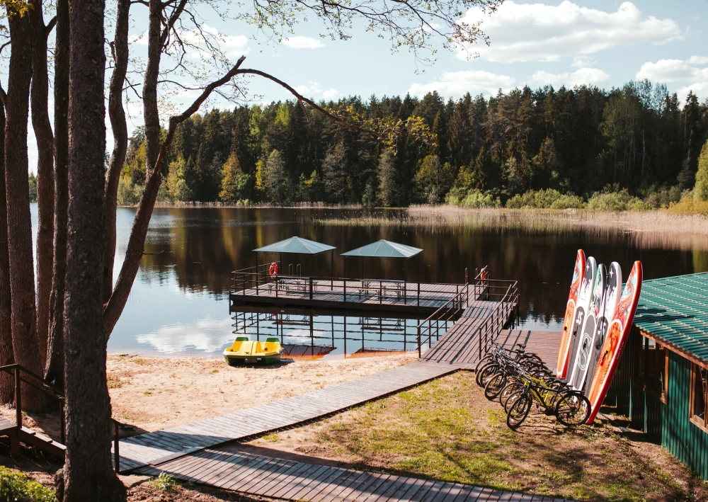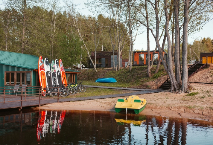 Комплекс предлагает уютные домики, оснащенные всеми необходимыми удобствами для комфортного проживания. Гости могут расслабиться на песчаном пляже, насладиться рыбалкой с понтона и провести время в окружении живописных пейзажей.
