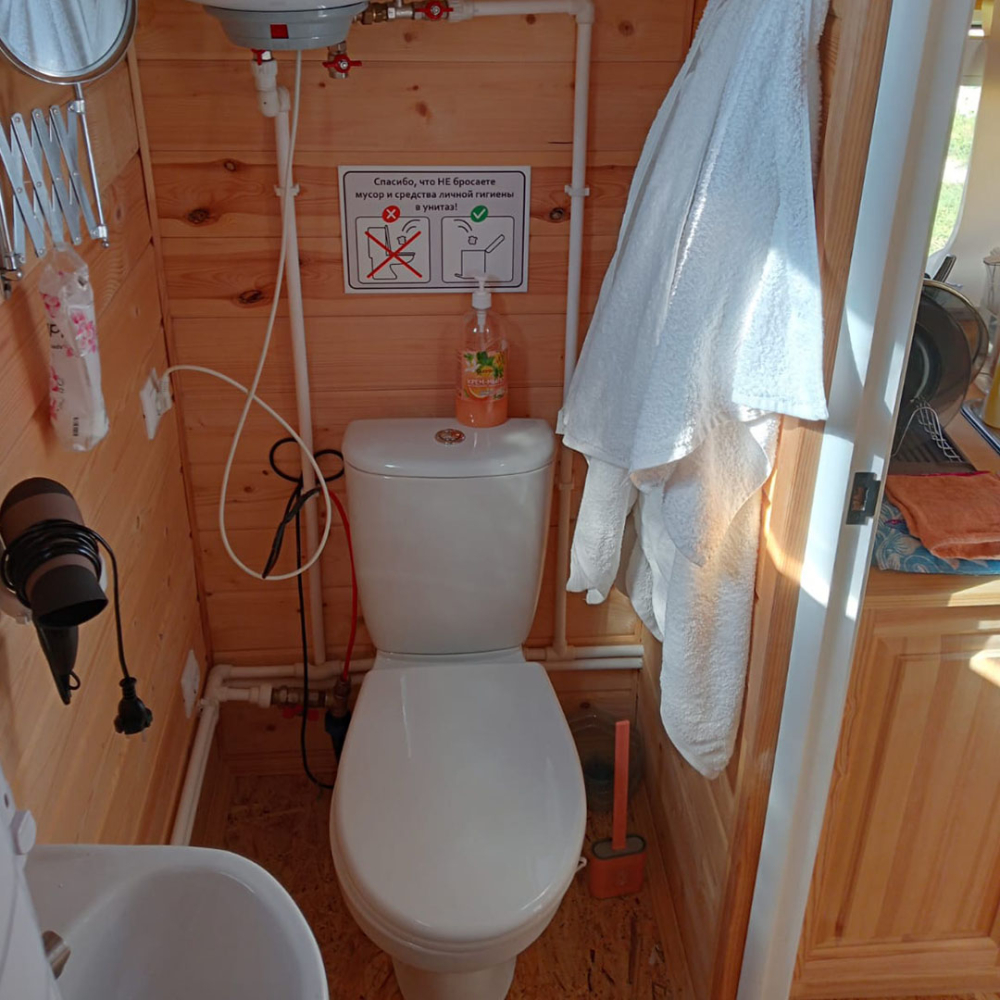 ⦁ Туалет с душем, фен, полотенца