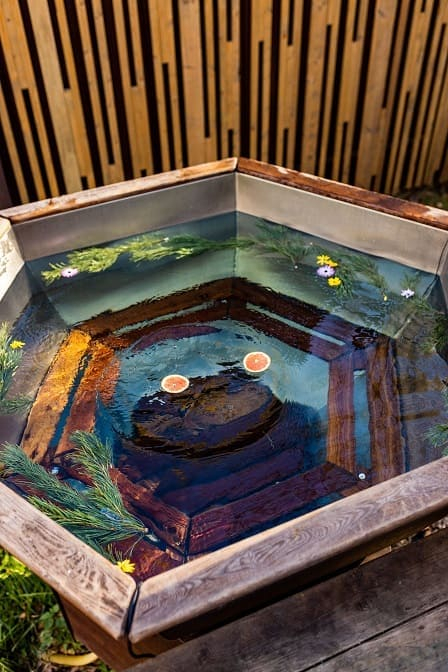 Коттеджи ДЕЛЮКС с банным чаном – дополнительная услуга с возможностью украшения чана ароматными цитрусами и еловыми ветками.