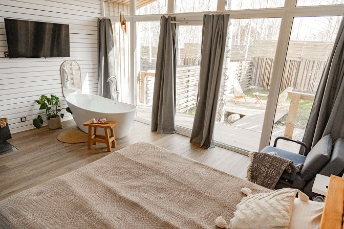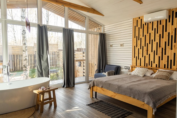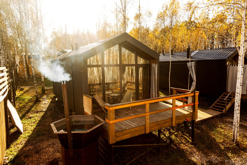 Коттеджи ЛЮКС с эксклюзивной ванной – закрытая территория и панорамные окна создают атмосферу романтического уединения.