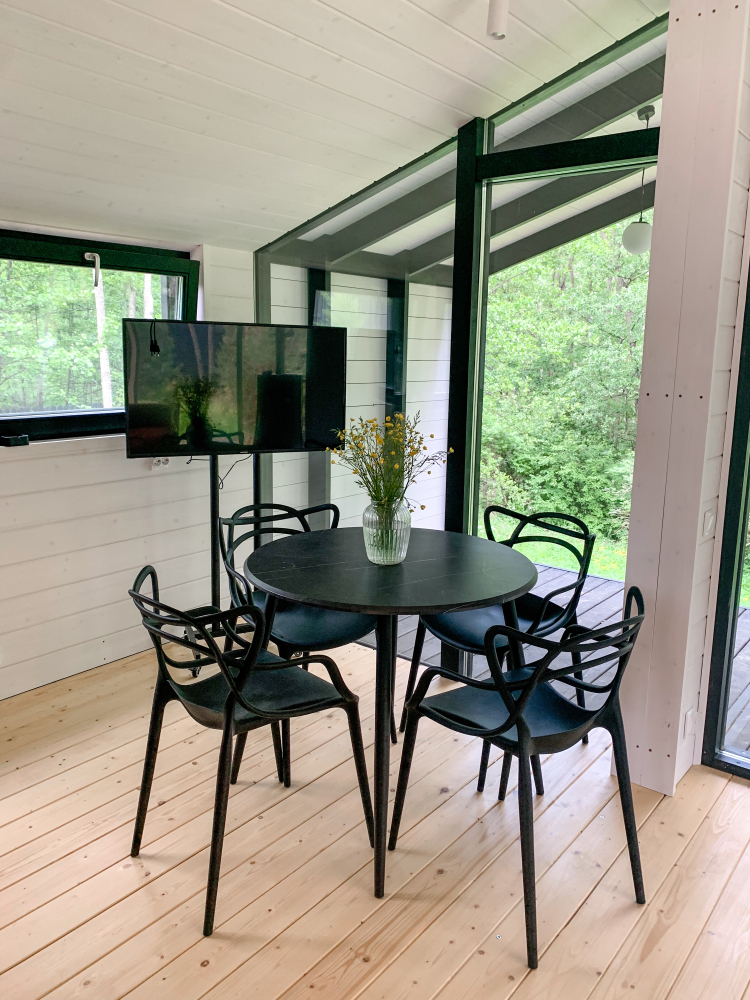Атмосфера дома: Дом прекрасен для любой цели пребывания – уединиться и максимально интровертно провести время, приехать на отдых с семьей или позвать компанию друзей. Расположение дома грамотно интегрировано в природную среду, при этом внутри есть все для комфортного пребывания.