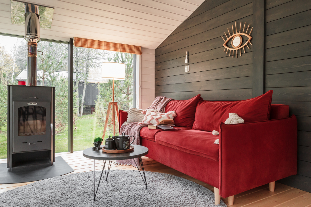 В просторной гостиной находится раскладной диван.