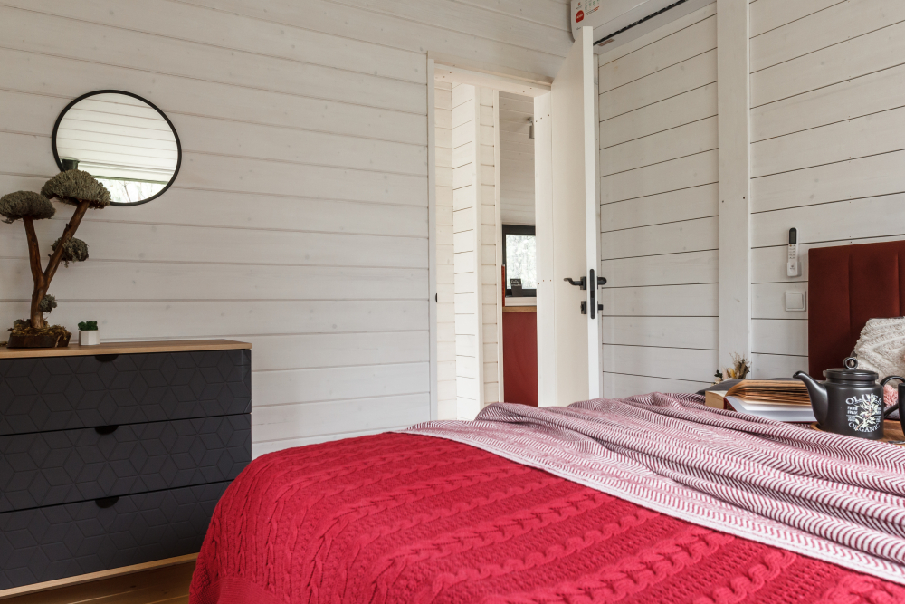 В доме есть отдельная спальня с двуспальной кроватью.