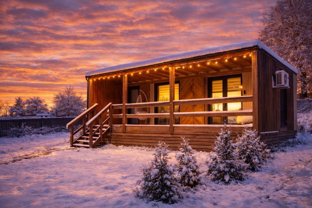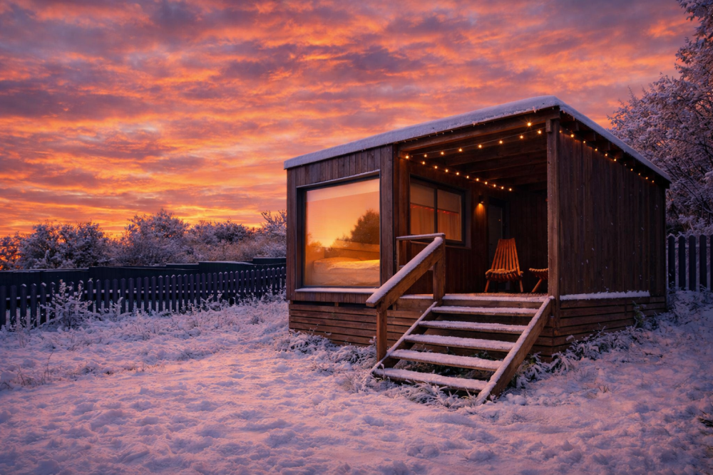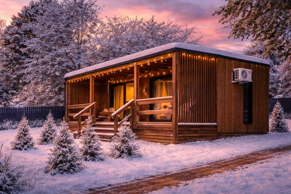 Двухэтажный дом (40 кв.м): с панорамными окнами и "вторым светом", рассчитан на комфортное размещение семьи или компании до 4 человек.
