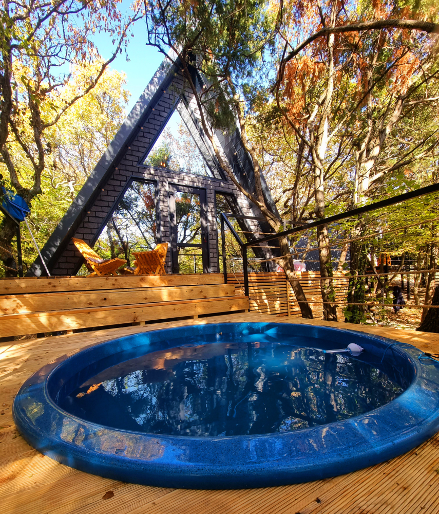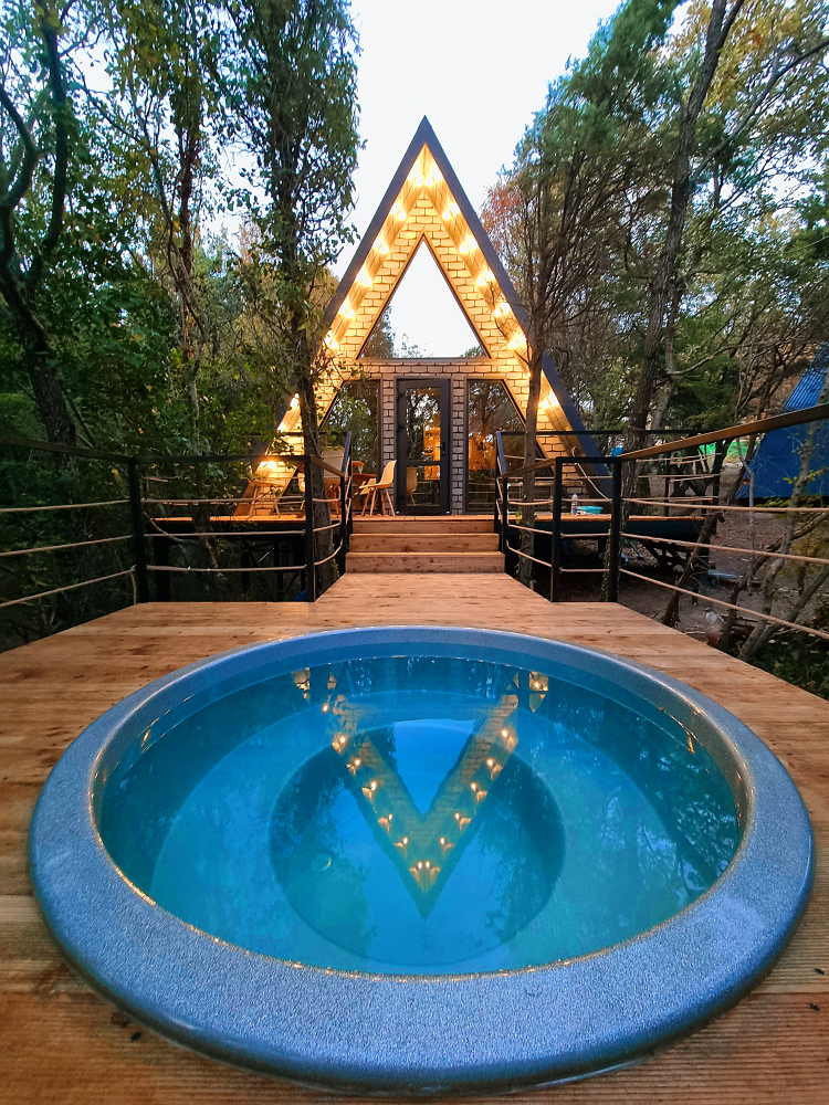 Горячий чан есть около домиков А-фрейм "Маяк", А-фрейм "Шторм", А-фрейм "Штиль", а-фрейм "Утёс".
