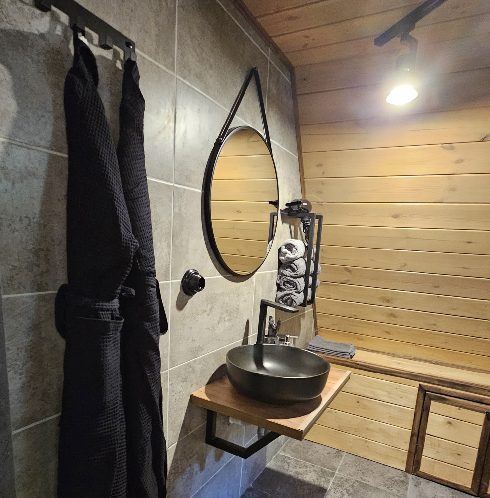 У каждого домика есть собственная купель, которую гости могут использовать бесплатно, наслаждаясь расслабляющими водными процедурами прямо на своей террасе.