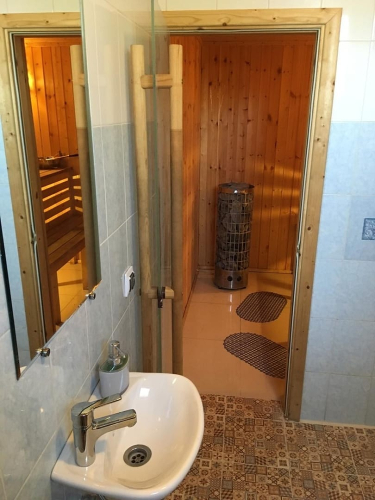 В домике имеется собственная сауна, услуга предоставляется за дополнительную плату. Стоимость безлимитного посещения сауны составляет 3000 рублей за весь период проживания.
