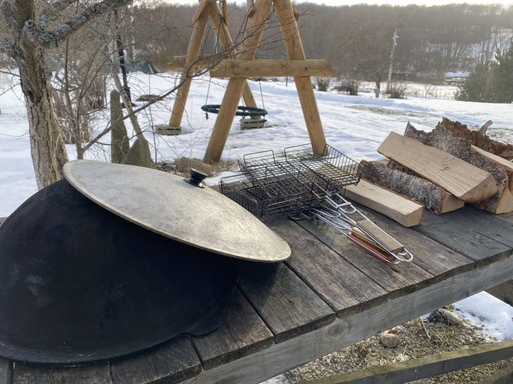 У каждого домика имеется собственная мангальная зона. Мангал и шампуры предоставляются бесплатно, всё остальное для мангала необходимо привозить с собой.