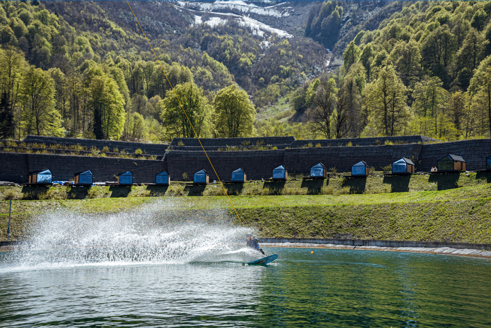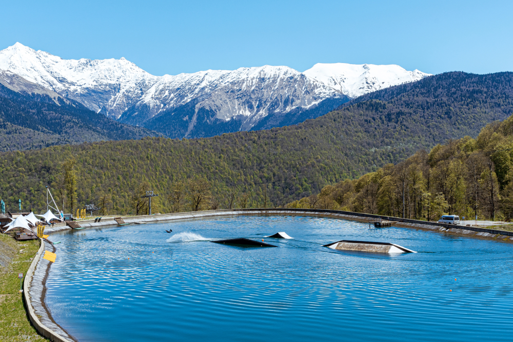 ПОГОНЯТЬ НА ВЕЙК-БОРДЕ. Комплекс расположен в 100 метрах от коттеджей. Озеро наполняется водой из горного ручья и оборудовано двумя реверсивными установками (лебедками) с автоматическим управлением. Для новичков и продвинутых райдеров. Снаряжение предоставляется. Сет катания 10 мин+снаряжение: от 1800 руб