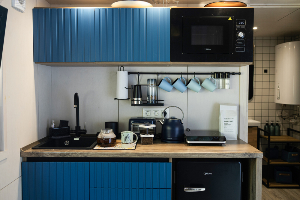 В доме есть все для комфортного отдыха: Smart-TV, кондиционер, холодильник, тостер, гейзерная кофеварка, кофемолка, индукционная варочная панель, чайник.
