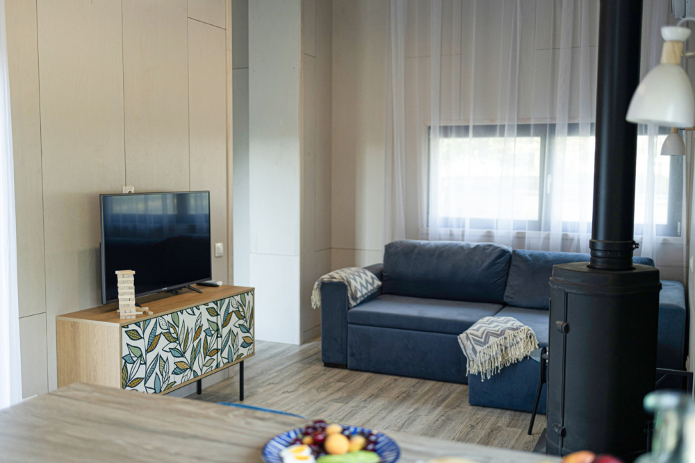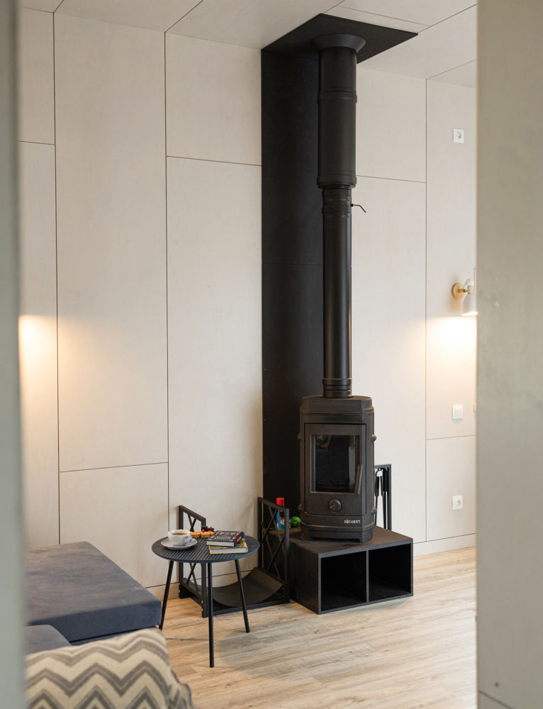 Для еще большего комфорта дом оснащен дровяным камином, колонкой "Алиса" и Smart-TV.