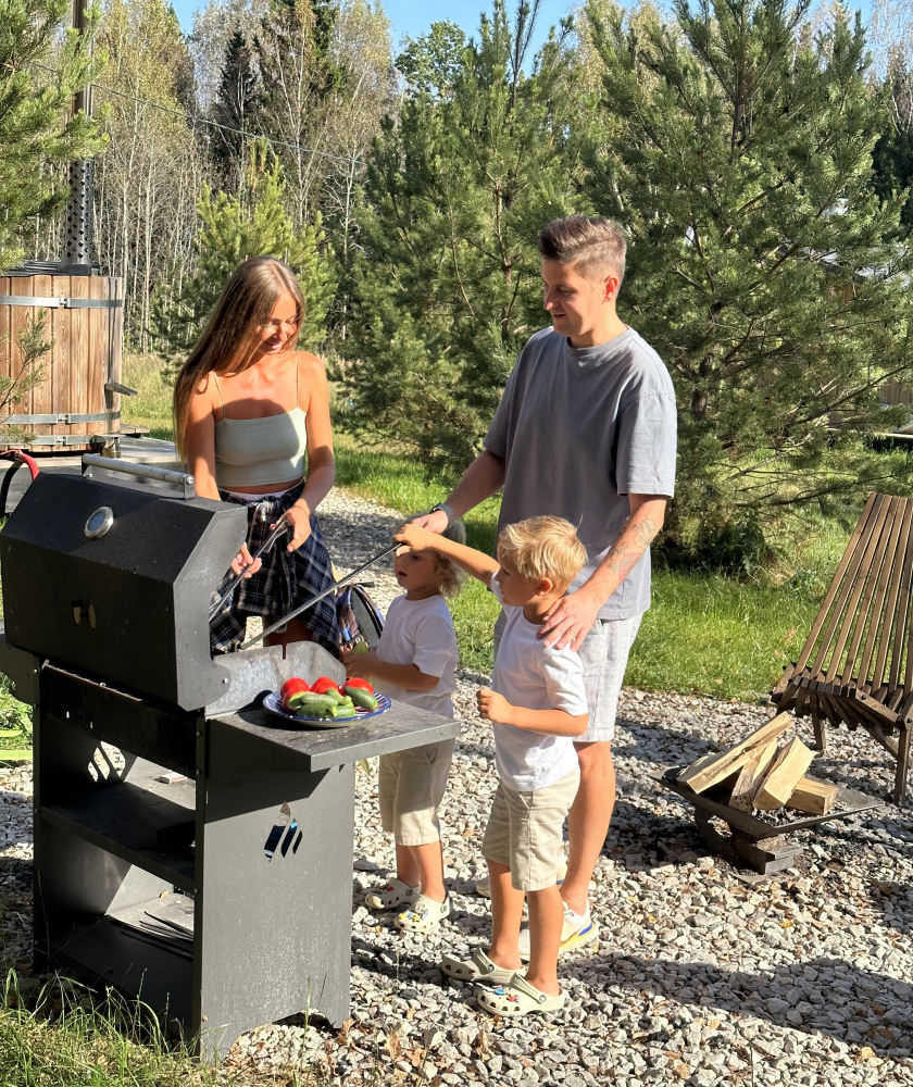 В каждом доме есть мангальная зона, шампура. Уголь и розжиг захватите с собой. В большинстве домов оборудована костровая зона для уютных вечерних посиделок. Дрова возможно привезти с собой или приобрести на месте.