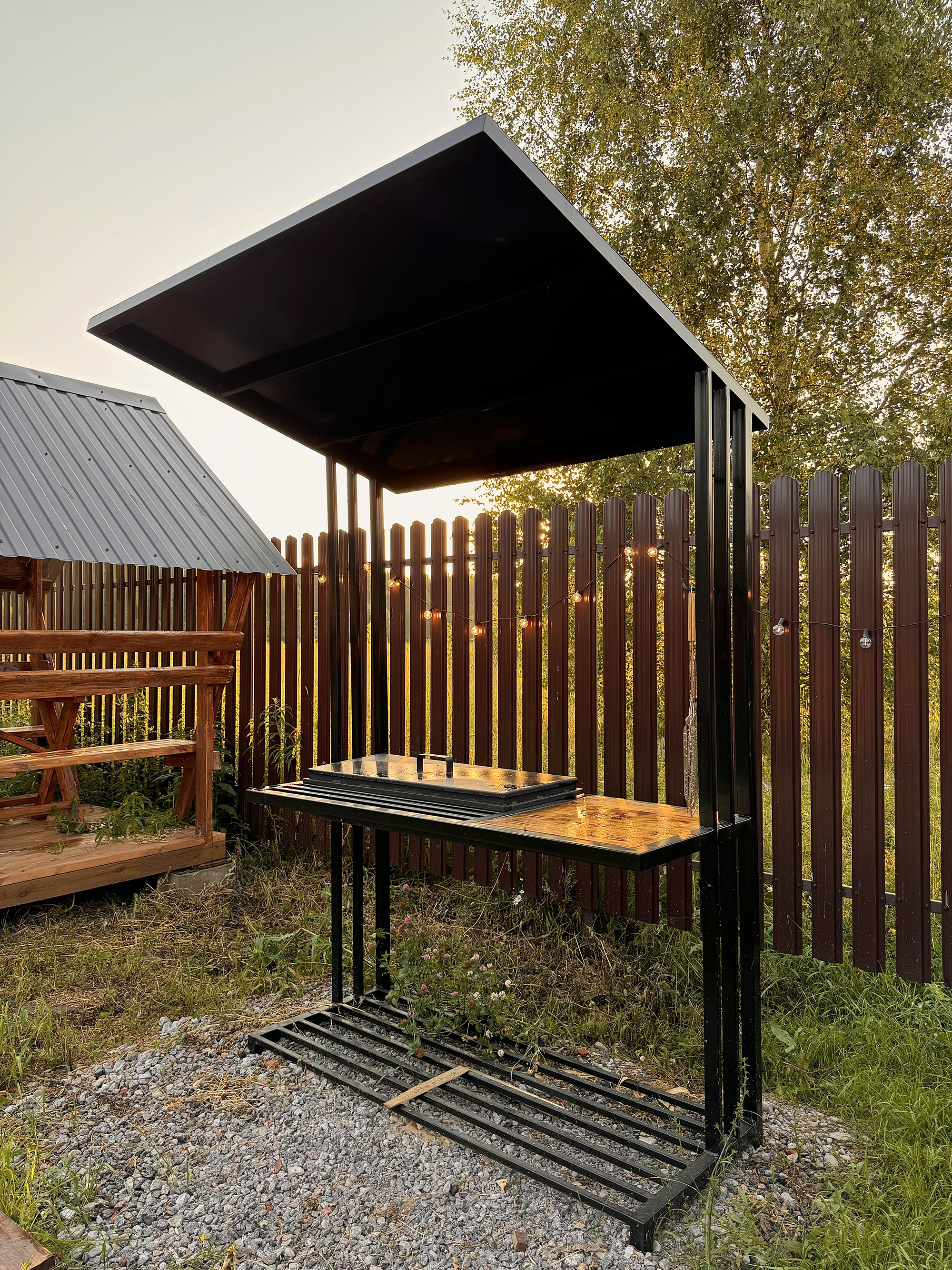Барбекю зона есть около домиков А-фрейм 3 "Форест".