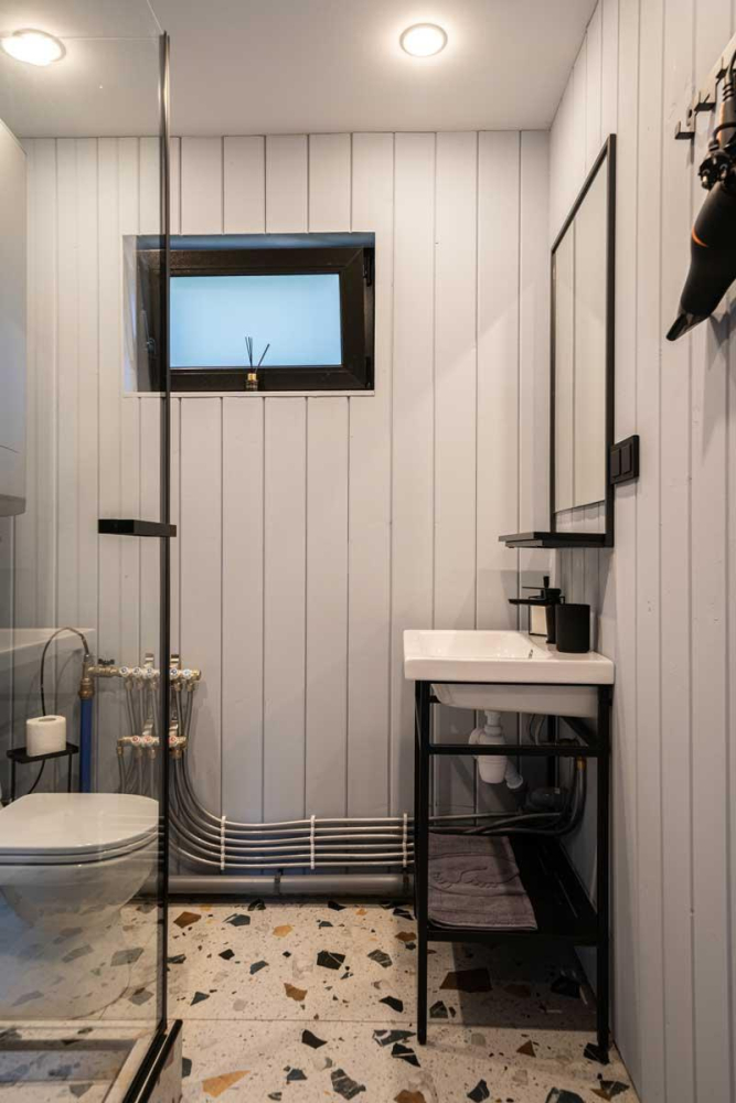 В коттеджах есть кухня, тепловые полы, центральное отопление или электрические обогреватели.