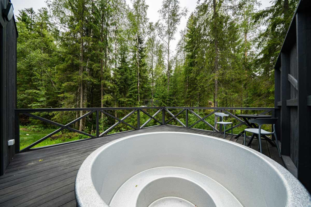 Мы создали уникальное пространство в сердце Карельского перешейка, окружённое вековыми елями. Каждый из наших 10 домов располагает панорамным видом на лес и оснащён террасой с купелью.