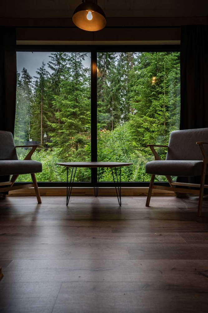 Панорамные окна позволят вам наслаждаться природой, не выходя из дома.