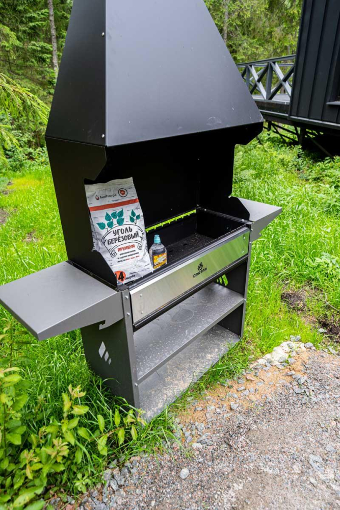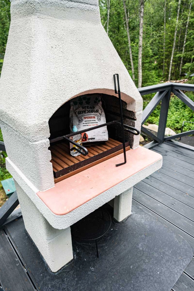 В каждом коттедже имеются шампура для приготовления блюд в зоне BBQ. Если Вам необходима решетка, то ее необходимо взять с собой из дома. Упаковку угля и розжига в сутки мы выдаем гостям бесплатно.